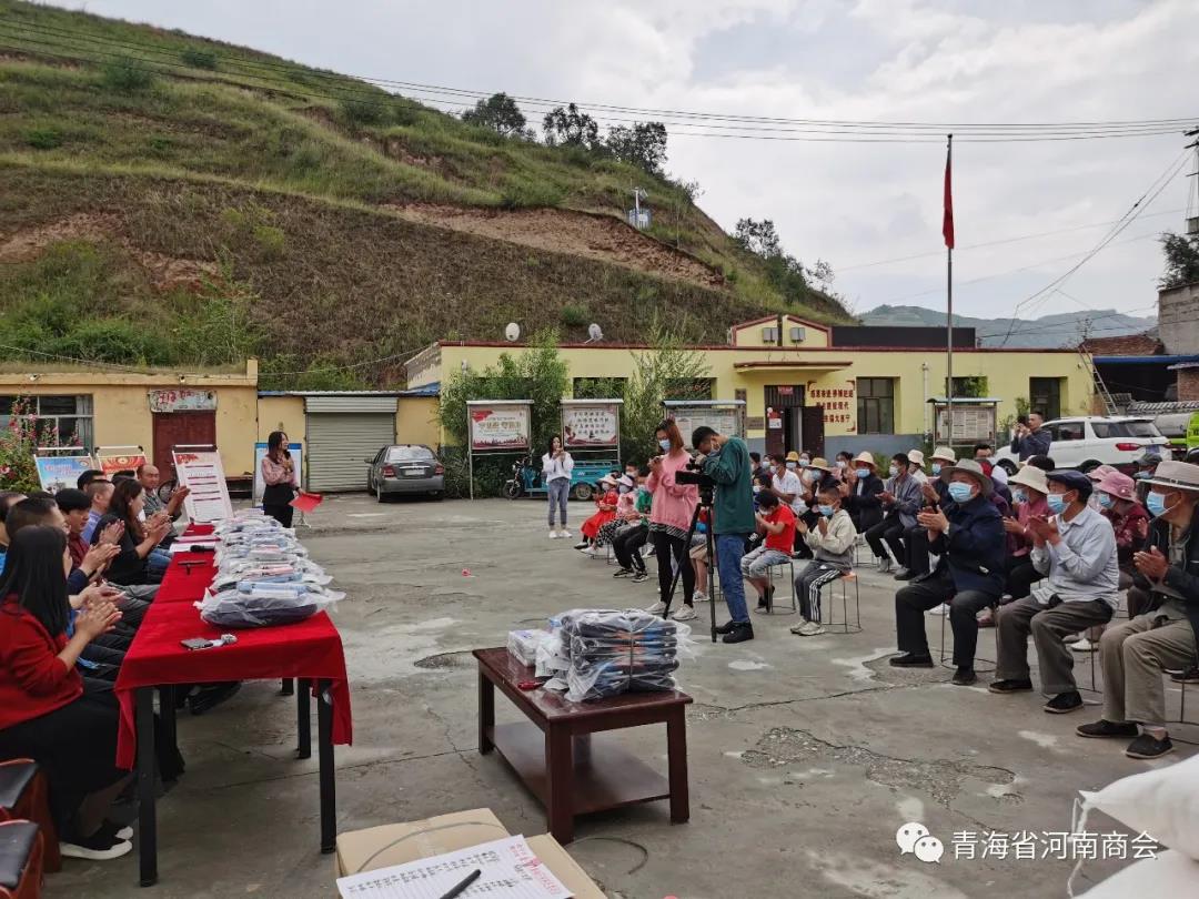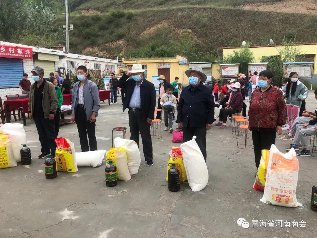 8月20日上午,为响应党中央和省委省政府号召,助力乡村振兴,积极为群众办实事,青海省河南商会会长刘强、党支部书记吕敬琦、常务副会长高新伟、常务副会长余林涛、副会长王榜周、秘书长肖崇飞、党办主任薛鹏飞、商会理事罗扩军、邓旭,一行赴湟中区海子沟乡海南庄村开展“关爱贫困群众、助力乡村振兴”爱心捐助活动。为该村群众送来五万余元的防疫物资、生活物资、学习用品。