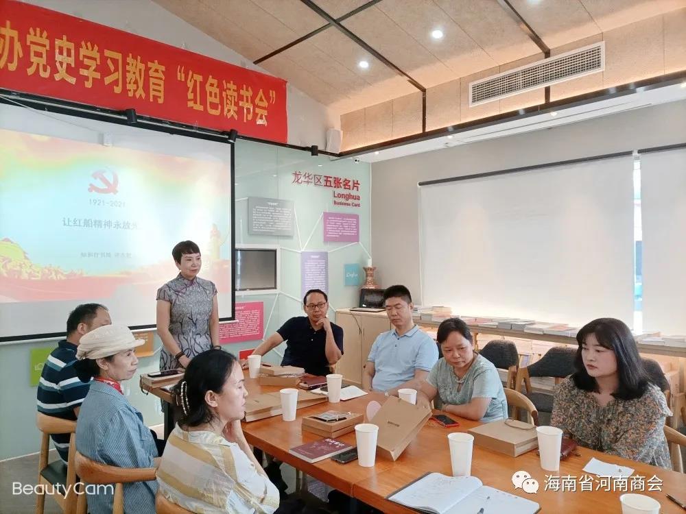 9月30日下午,海南省河南商会组织举行“庆国庆红色读书会”。商会副会长许允泰给在座的各位会员和书友上了一堂生动的党课,讲述中国共产党百年征程中的波澜壮阔,历久弥坚。“历史是最好的教科书。中国共产党的百年征程,是苦难中铸就辉煌、奋斗后赢得未来的百年。能够让我们认清历史方位,汲取前行的智慧与力量。这是极为宝贵的精神财富。” 来有收获,回有提升,红色读书会有氛围、有好书,点燃了现场气氛,在心得分享环节,大家纷纷发言,直抒胸臆。大家都说,这次读书会办得好,是一种精神享受的过程,沉醉书香,感悟党史,交流互动,深受鼓舞,以学促干,坚守初心,不忘来路,同时会员间加深印象,增强黏性。希望读书会持续输出,成为会员朋友心灵休憩和提升自我的地方。