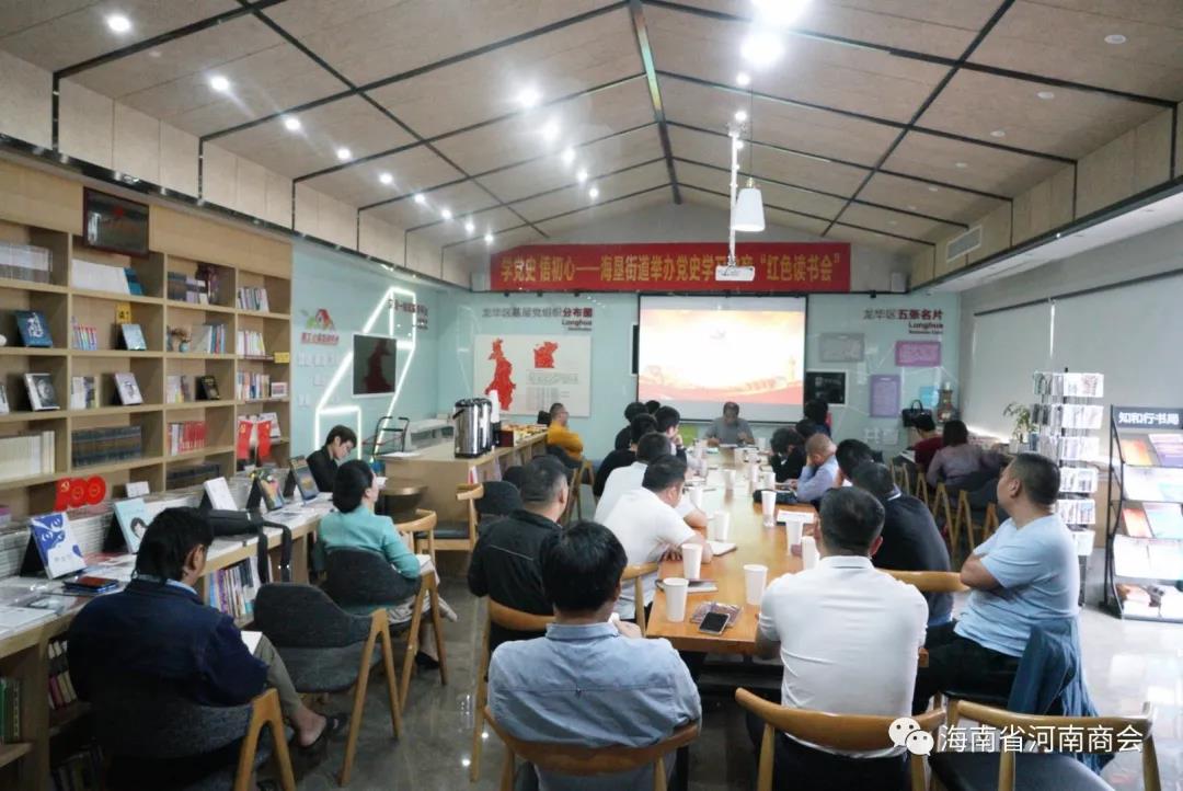 10月23日,海南省河南商会、海南省知和行书局联合开展的红色读书会第三次活动,特邀有着三十年警龄的老党员张建义给大家上专题党课。本次专题党课进一步加深了商会会员、党员对“不忘初心、牢记使命”主题教育重大意义的认识,以党课为契机,大力宣传党的路线、方针、政策,以党建促会建,以党建为企业补钙壮骨,提高排毒杀菌政治免疫力,凝聚商会会员的力量,团结商会广大会员“听党话,跟党走”,建功海南自贸港新时代。