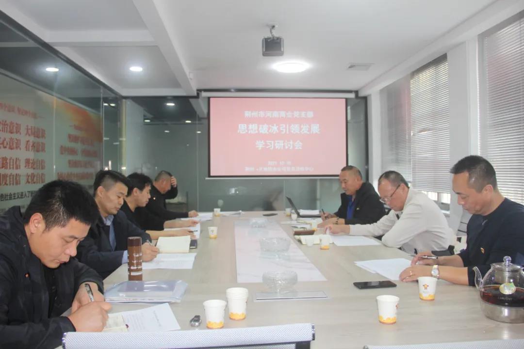 2021年10月30日,荆州市河南商会党支部党小组第一组在天地防水公司党员活动中心,集中召开了主题为“思想破冰引领发展”的学习研讨会。会议学习了习近平在纪念辛亥革命110周年大会上的讲话内容;学习了中央全面深化改革委员会第二十一次会议精神;与会党员围绕两个学习内容,结合商会实际情况、企业发展状况、自身心得谈了体会,一致认为中华民族只有在党的坚强领导下,才能实现伟大复兴,中国人民只有在党的坚强领导下,才能真正过上安定、幸福的生活,表示坚决拥护党的领导、党的路线、党的方针政策,从内心深处用实际行动给予支持。同时对商会未来的发展提出了宝贵的建议。