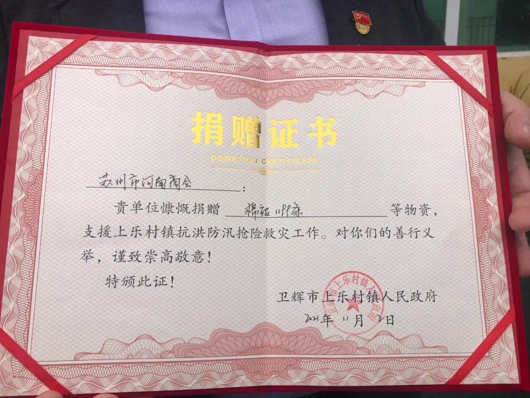 经过900多公里的长途奔波,根据卫辉市政府指定,将满载着在苏豫籍企业家深情厚谊的棉被运抵卫辉市上乐村镇人民政府,送上苏州市河南商会企业家的爱心。此次“暖冬行动”的物资,将通过当地的慈善机构有序发放给受灾群众。会长夏广兵表示,商会中的在外游子有着浓浓的家乡情怀,都十分愿意为家乡灾区重建工作贡献自己的力量,并将持续关注支持家乡的灾后重建工作,希望这些凝聚爱心力量的物资能够温暖寒冬,鼓励大家树立重建家园的信心。