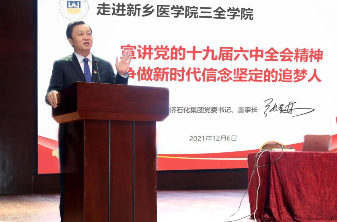 本次党课的主题是“新时代大讲堂之党的十九届六中全会精神进校园”,隆重邀请到了大桥石化集团党委书记、董事长张贵林为广大同学们授课。