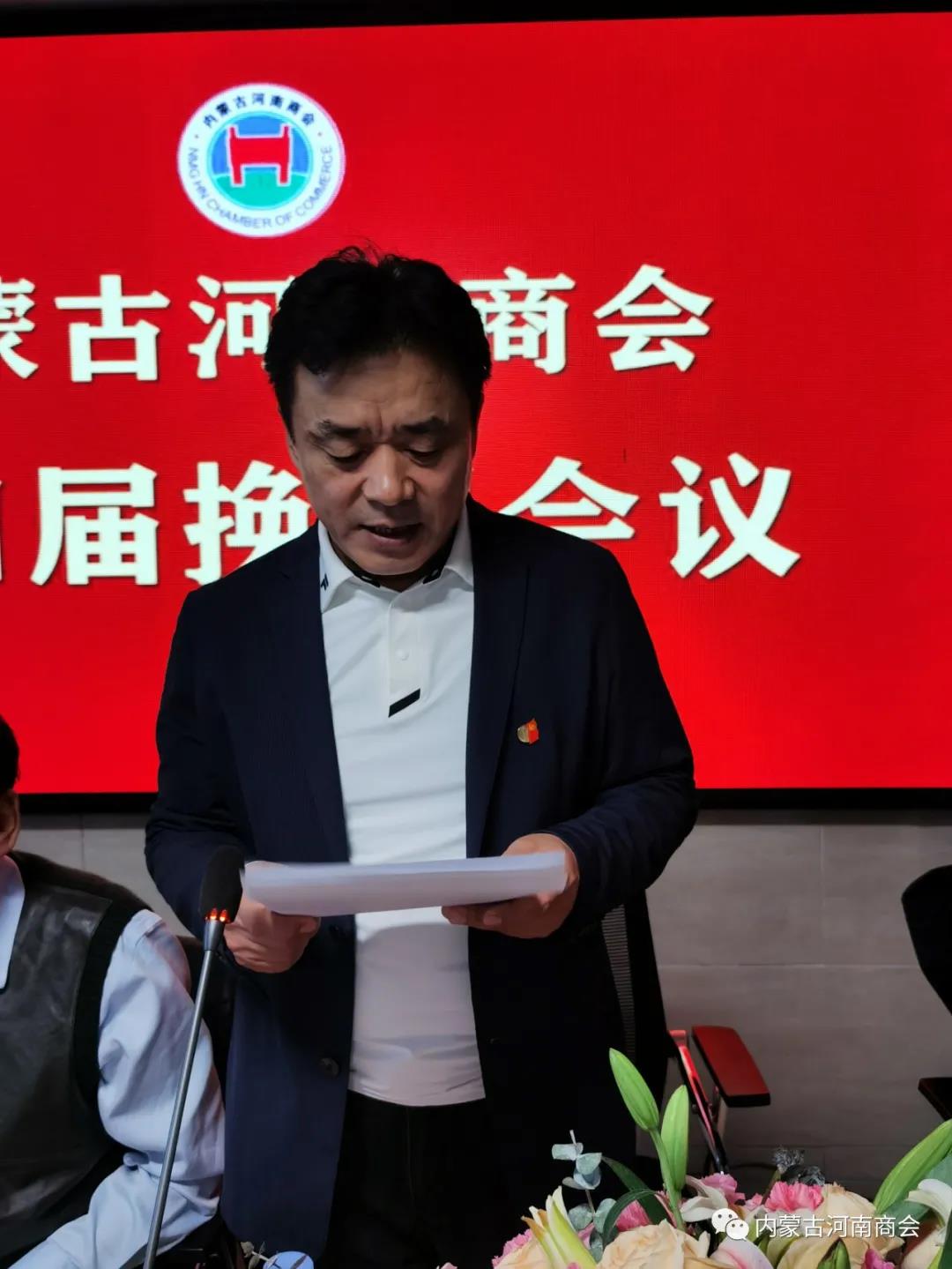12月26日,内蒙古河南商会第四届换届会议在呼和浩特市海亮广场会议室成功举行。会上,孙治华连任商会会长;常正央当选监事长;段建伟当选执行会长。赵书清、李玉环、李渊、赵文超、常琨鹏、李元昌、郭卫珍、武小宾、刘红、李玉梅等十人当选常务副会长,韩清文当选秘书长。