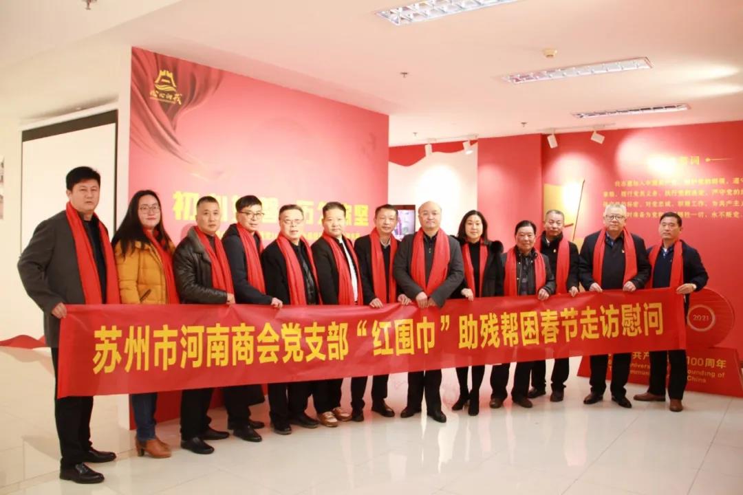 2022年1月18日,苏州市河南商会党支部积极响应市总商会党委号召,组织开展“红围巾”助残帮困慰问活动,赴苏州市姑苏区退役军人服务中心走访交流,为残、困退役老兵和优抚对象送去党和政府的关怀,致以新春的美好祝福。商会会长夏广兵会表示,自己作为出生在革命老区的信阳人,自小耳濡目染,对军人有着特殊的情怀,深刻理解广大军人作为国家中流砥柱、坚强后盾的意义,通过本次活动,传递创业者的一份温暖和敬意,今后,商会也将进一步提高政治站位,学习并发扬红色精神,继续用实际行动体现崇尚英雄、学习英雄、关爱英雄的责任担当。本次活动按照“党建引领、自愿量力、帮扶结合、彰显温度”的原则,通过献上一条“红围巾”、唠叨一些“暖心话”、解决一点“小困难”等举措,为优抚对象送上慰问金和大米、食用油、鸡蛋等慰问品,切实提升退役军人的归属感、成就感、荣誉感,帮助他们过好温暖年。
