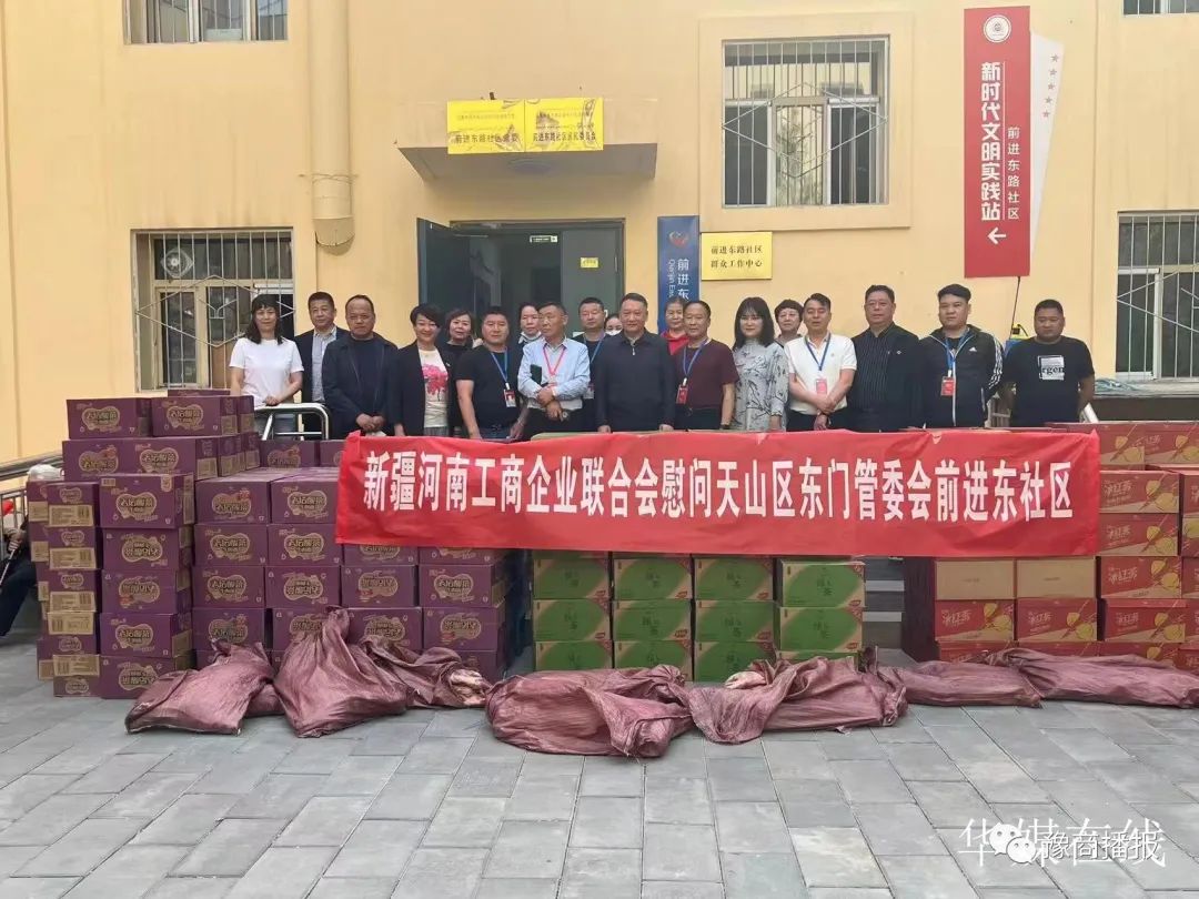 5月15日,新疆河南工商企业联合商会在孙磊会长的倡议下,前往慰问天山区东门街道前进东路社区。慰问活动中给忙碌在一线的基层社区工作人员送来了羊10只,方便面和饮料360件,商会“我为群众办实事”捐赠单元门等价值5万元慰问品,同时对东门片区5名困难学生进行捐资助学5000元。商会一行表示,希望通过本次慰问活动,展现 企业家的社会责任与担当,也向社会传递正能量,呼吁社会各界高度重视和关怀一线工作者,形成全社会崇敬、关心、关爱一线工作的良好氛围。
