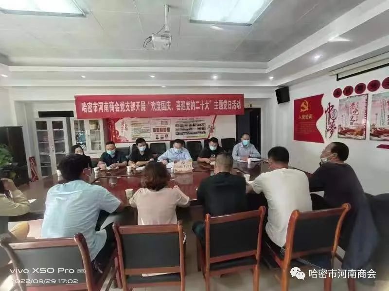 9月29日,哈密市河南商会党支部开展“欢度国庆、喜迎党的二十大”主题党日活动。