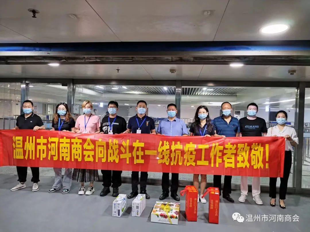 9月18日,温州市河南商会组织开展慰问一线防疫人员,勇于承担社会责任活动。商会党支部负责人管继红带队,商会秘书处、慈善义工部负责人等一行首先来到温州动车南站,带着饮料和时令水果,慰问坚守岗位的一线疫情防控人员。