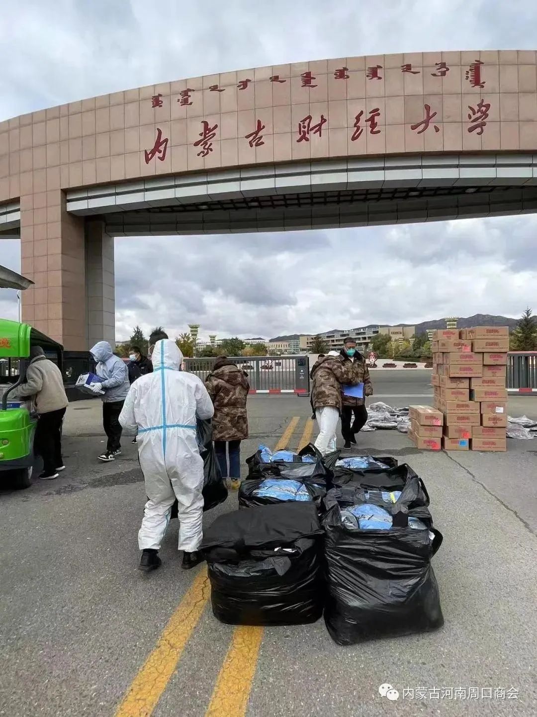 近日,呼和浩特市疫情防控形势异常严峻,内蒙古河南周口商会积极响应自治区工商联防疫号召,商会会长赵书清带领班子成员经研究决定,自筹资金10万余元,用于购买防疫、防寒物资。10月9日,内蒙古河南周口商会得知当地内蒙古财经学院的部分同学们没能回家拿保暖棉衣,气温骤降急需保暖衣物保暖。得知消息后,内蒙古河南周口商会购买了200件保暖棉衣、独立医用外科口罩、消毒液、医用体温抢等大量防寒防疫物资近10万余元,及时送到了内蒙古财经大学同学们的手中,使同学们及时得到了温暖和防疫保障!