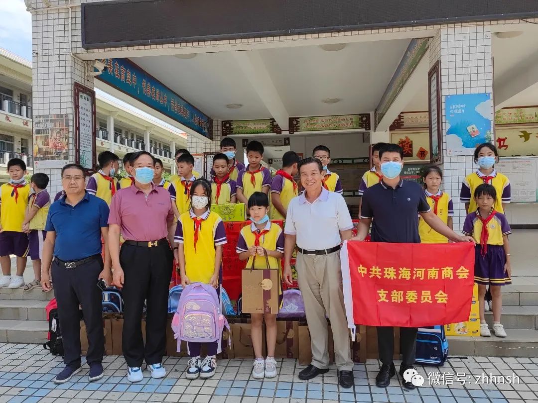 在中秋节前后,珠海河南商会在赵军会长的带动下,会员们纷纷伸出援手,捐款捐物,共筹措3万余元物品、5万元人民币,后分別赴斗门区六乡中心小学和珠海市巩固脱贫攻坚实施乡村振兴对口帮扶点茂名市电白区霞洞镇开展“我为群众办实事,传递温暖颂党恩”活动。他们走进学校与师生亲切交流,勉励学子们努力学习,长大报效国家;他们在霞洞镇驻村工作队和镇领导的陪同下,深入军屯村、石顶村委会走访慰问困难户,看望98岁抗美援朝老战士遗属和在党60多年的老党员,与他们亲切交谈,了解身体、生活情况,送上节日礼物和学习用品,传递爱心,受到广大师生和人民群众热情欢迎。
