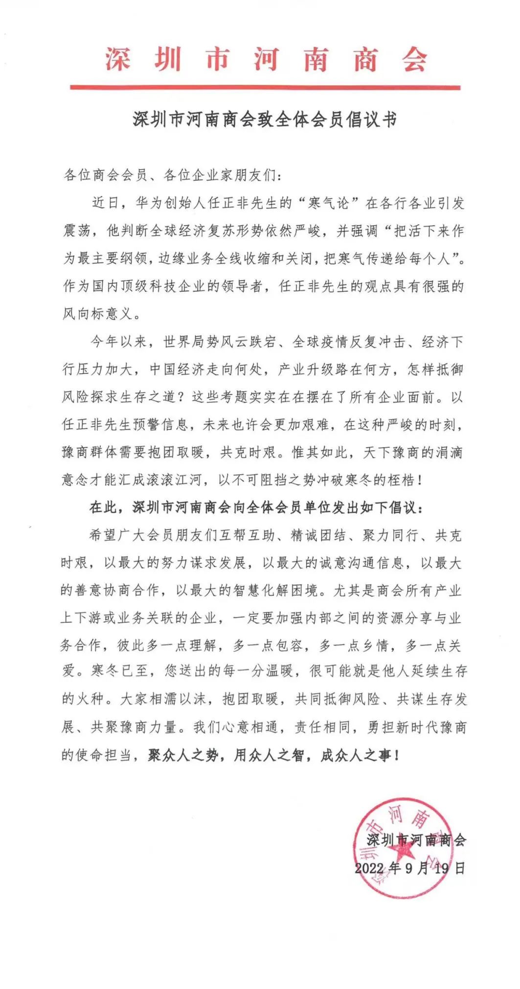 在此,深圳市河南商会向全体会员单位发出如下倡议: