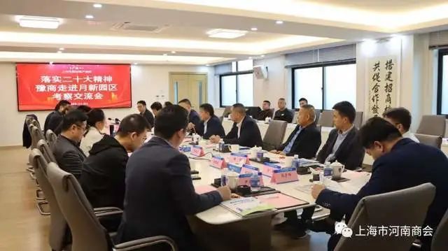 11月4日,上海市河南商会携同上海市濮阳商会、上海市信阳商会、 上海市南阳商会、上海市许昌商会,上海市驻马店商会、上海市周口商会, 集团在月新产业园区联合举办“落实二十大精神、上海 走进月新园区座谈交流会”。各商会交流发言、一致表示民营企业要正心正念,跟党走。沿着二十大会议指引的方向创新发展、砥砺前行。诚信经营、资源共享,一定能够实现合作共赢的美好愿望。