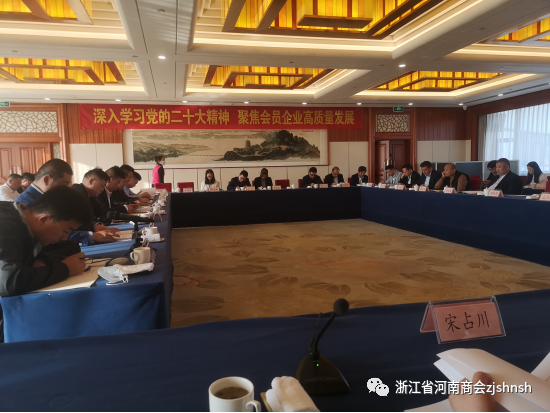 2022年11月6日,浙江省河南商会举行浙江省“第三届商会周”活动暨河南商会三届七次理事会。第三届商会活动周的主题是:“学习党的二十大精神,聚焦高质量发展”以论坛形式展开。浙江省河南商会会长宋占锋结合商会实际从六个方面谈“学习党的二十大精神,聚焦会员企业高质量发展”,重点讲到会员企业高质量发展要力控稳定发展,保持平衡发展,谋划持续发展。与会 围绕会员企业如何高质量发展相继发言,互相交流,献计献策,论坛形成会员企业高质量发展的共识,确立高质量发展的发展新理念,探讨高质量发展的新路径。