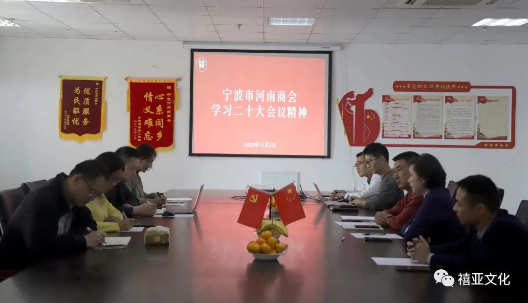 11月2日,宁波市河南商会党支部召开了二十大会议精神专题学习会。会议一致认为,我们民营企业要紧密结合实际学习二十大精神,从党的大政方针中,找到指引企业发展的理论依据和政策导向,使企业的生存发展,符合国家发展的大趋势,保证企业健康、和谐的可持续发展。精彩的发言讨论,振奋人心,让各位党员企业代表们备受鼓舞。大家表示,希望可以有更多机会组织学习二十大会议精神,让各企业在学习中,结合自身行业实际,找准切入点、着力点,推动宣传贯彻党的二十大精神走深走实。