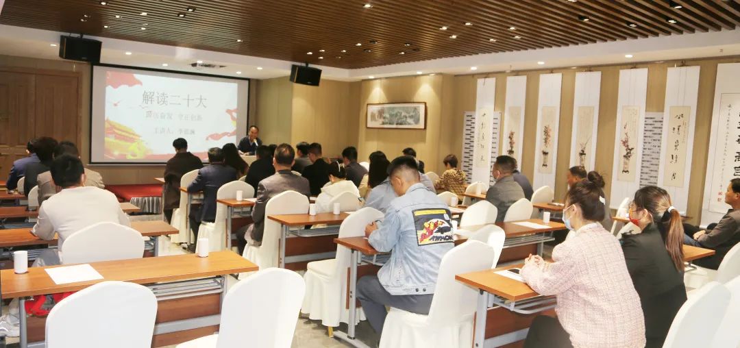 11月5日,山西省河南商会开展党的二十大精神集中学习活动。活动邀请李留澜教授从世界百年未有之大变局入手,分析了当前国际、国内形势,精心解读了二十大报告中的关键论述、报告金句和精神内涵,深刻剖析了现代企业发展方向,在学习过程中,大家聚精会神,部分会员还边听边记,报告中讲述的新思想、新观点引起了大家的强烈共鸣。大家纷纷表示要以二十大精神为指引,立足自身企业发展,坚定信心、守正创新,埋头苦干、奋勇前进,凝心聚力、担当作为,共同把商会做大、做优、做强,积极为当地全方位高质量贡献更大的力量。