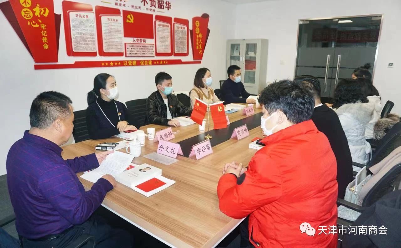 12月3日,天津市河南商会党支部组织召开“迎盛会、铸忠诚、强担当、创业绩”主题学习宣传教育实践活动第四专题组织生活会,并进行了学习研讨。