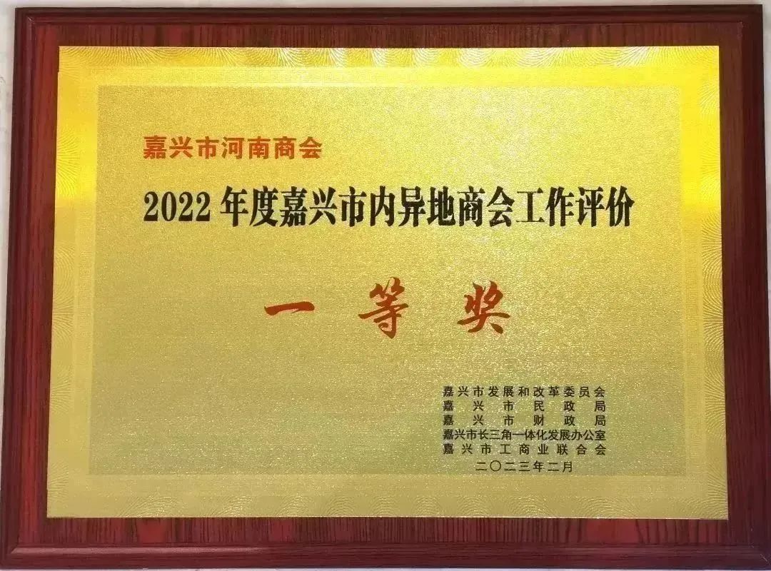 嘉兴市河南商会荣获嘉兴异地商会工作评价一等奖等多项荣誉