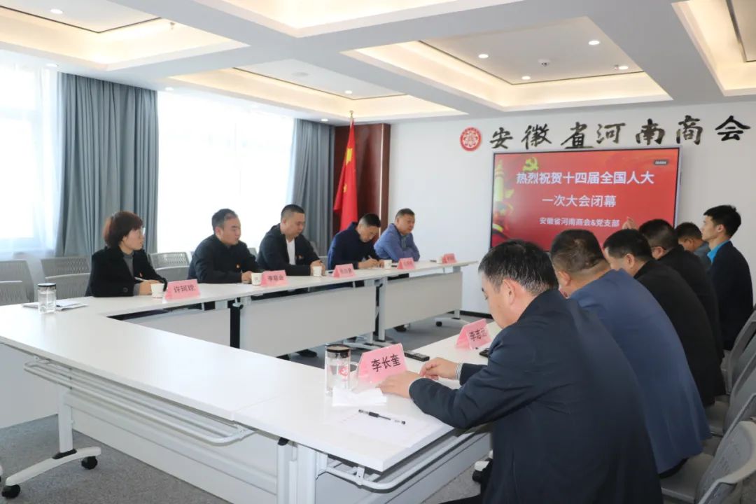3月13日上午,安徽省河南商会党支部组织收看十四届全国人大一次会议闭幕直播,聆听总书记重要讲话和总理答记者问,开展学习全国“两会”精神座谈会。大家纷纷表示,全国两会,凝聚共识,擘画蓝图,提振信心,备受鼓舞。习近平总书记在看望民建、工商联界委员时强调:“要引导民营企业和民营企业家正确理解党中央方针政策,增强信心、轻装上阵、大胆发展”。这让经历了三年大疫但仍处于迷茫中的民营企业家提振了信心,为民营企业谋划发展注入了强大动力。这场风清气正、凝心聚力的大会,必将汇聚起全面建设社会主义现代化国家的磅礴力量。