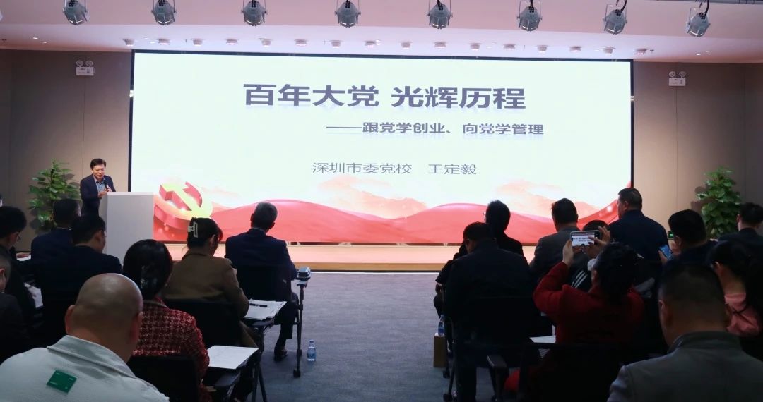 深圳市委党校党史党建党性教研部副主任、副教授王定毅为大家带来《百年大党 光辉历程》--跟党学创业、向党学管理专题党课。党课主题鲜明、脉络清晰,教授语言生动活泼,现场课堂气氛非常活跃。党员们纷纷表示今日的党课对深刻理解和准确把握习近平新时代中国特色社会主义思想主题教育具有极大的启发。
