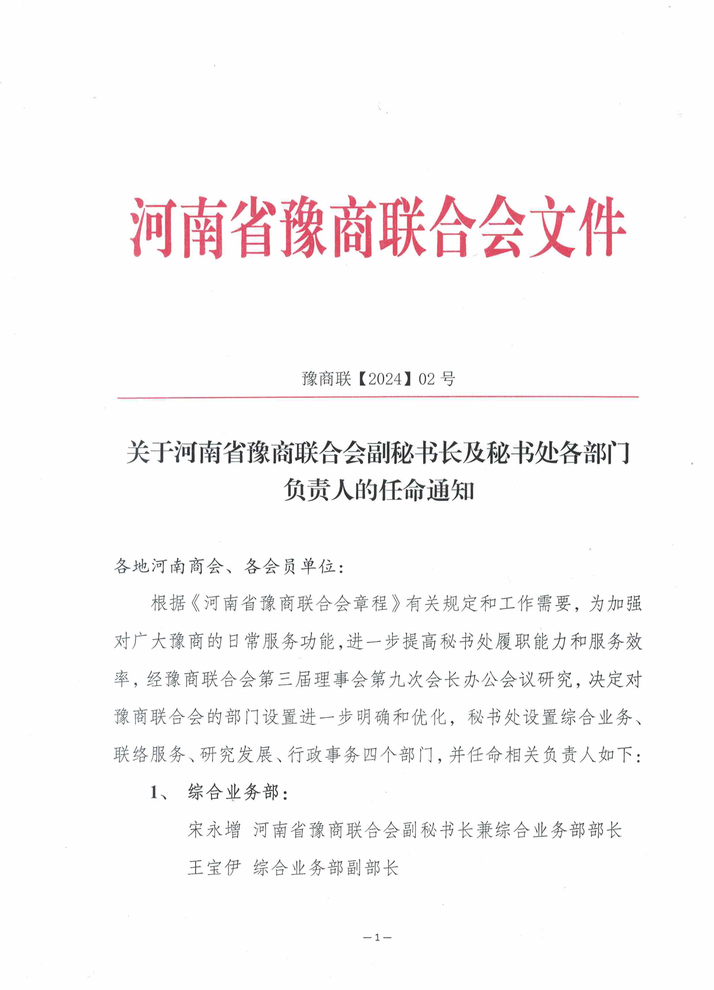 关于 副秘书长及秘书处各部门 负责人的任命通知