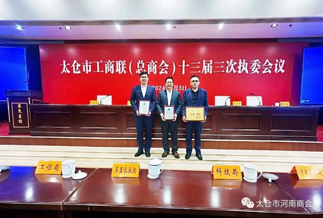 2024年1月3日,太仓市工商联(总商会)召开十三届三次执委会议。会上,太仓市河南商会被太仓市工商联(总商会)认定为2023年度太仓市“四好”商会(有效期5年),商会会长于万祥被评选为2023年度“优秀会长”,商会秘书长张豪奇被评选为2023年度“优秀秘书长”。