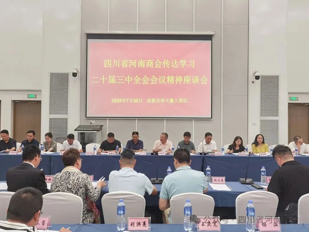 7月30日,四川省河南商会召开座谈会,深入学习领会党的二十届三中全会精神。会议要求全体会员要突出抓好三个方面:一是要全面学习、深刻领会全会精神,全面准确把握全会对坚持和落实两个“毫不动摇”的重要部署,坚决扛起促进“两个健康”的政治责任。二是要强化政治引领,坚定发展方向、提振发展信心、强化自身建设,推进商会高标准发展。三是要持续创新、不断突破,以新质生产力推动高质量发展,带领企业积极构建新发展格局,主动履行社会责任,以实干实绩为中国式现代化建设贡献新的更大力量。大家纷纷表示,一定要更加紧密地团结在以习近平同志为核心的中共中央周围,锚定全会提出的改革任务目标,凝心聚力、履职担当、奋发进取,为进一步推进全面深化改革、奋力谱写中国式现代化新篇章贡献智慧和力量。