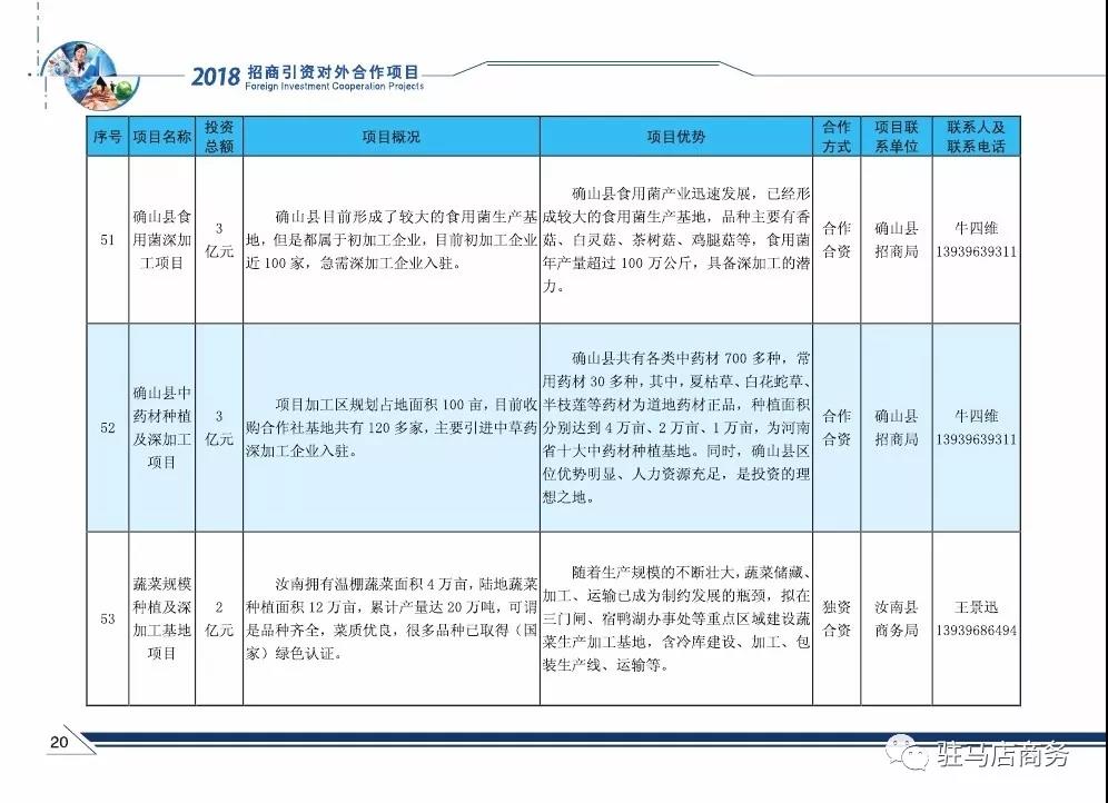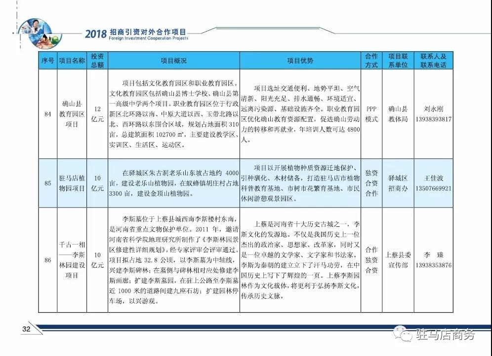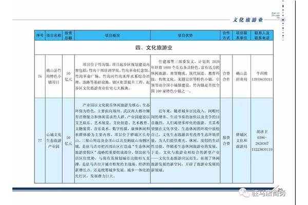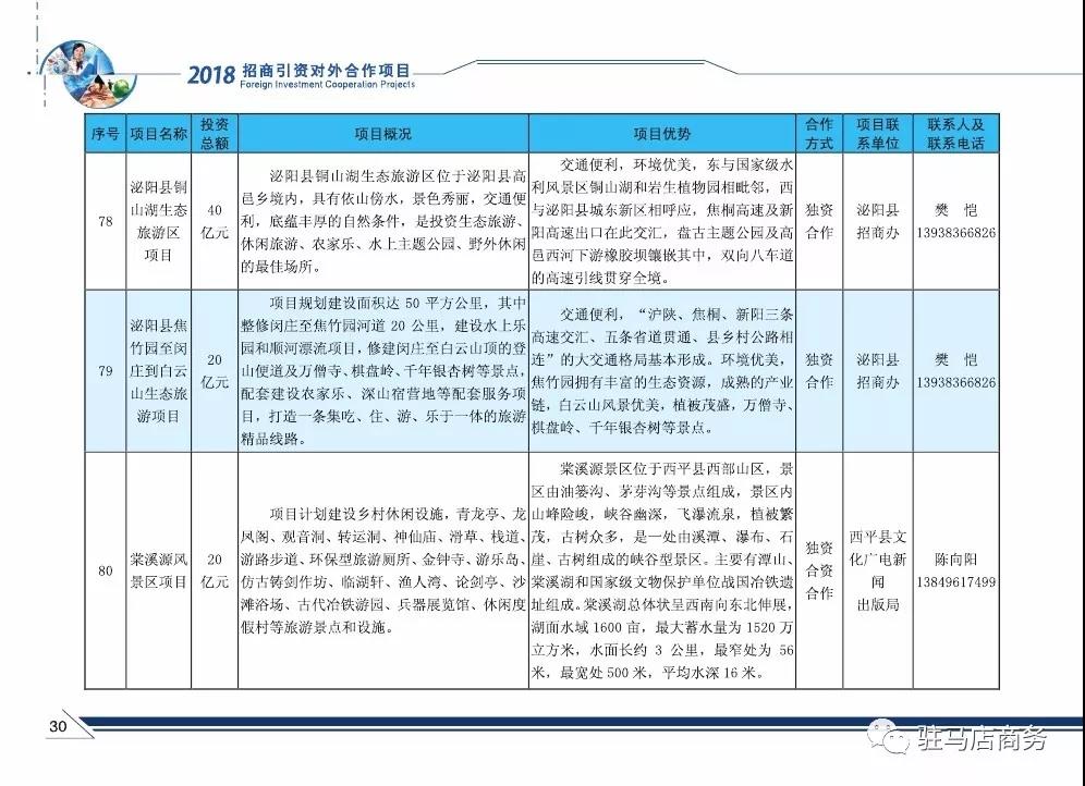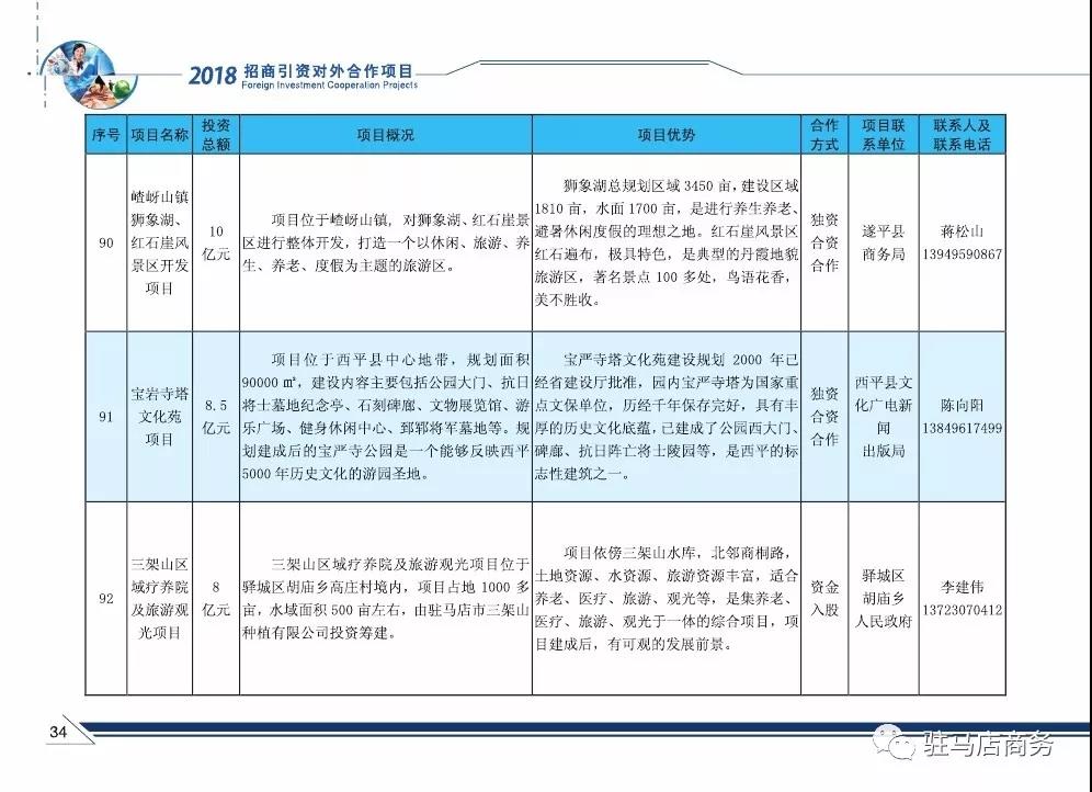 现将2018年驻马店市招商引资对外合作项目(文化旅游业)发布如下: