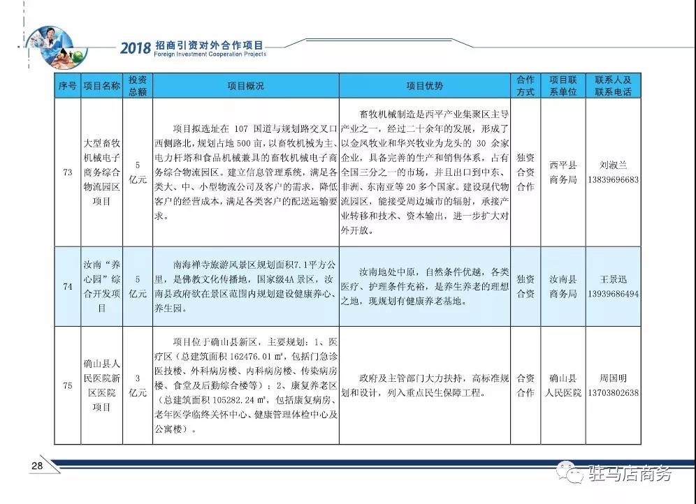 2018年驻马店市招商引资对外合作项目(现代服务业)